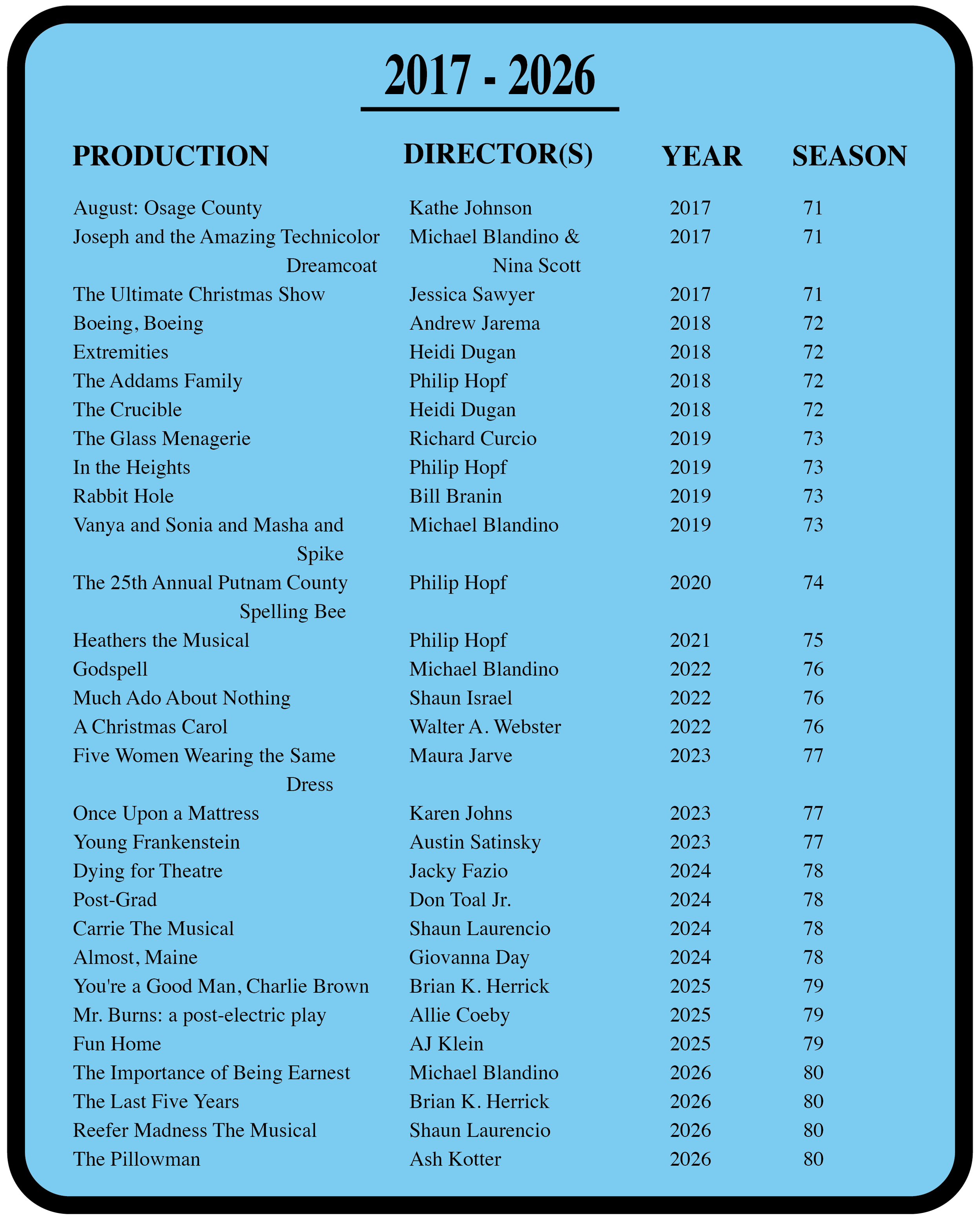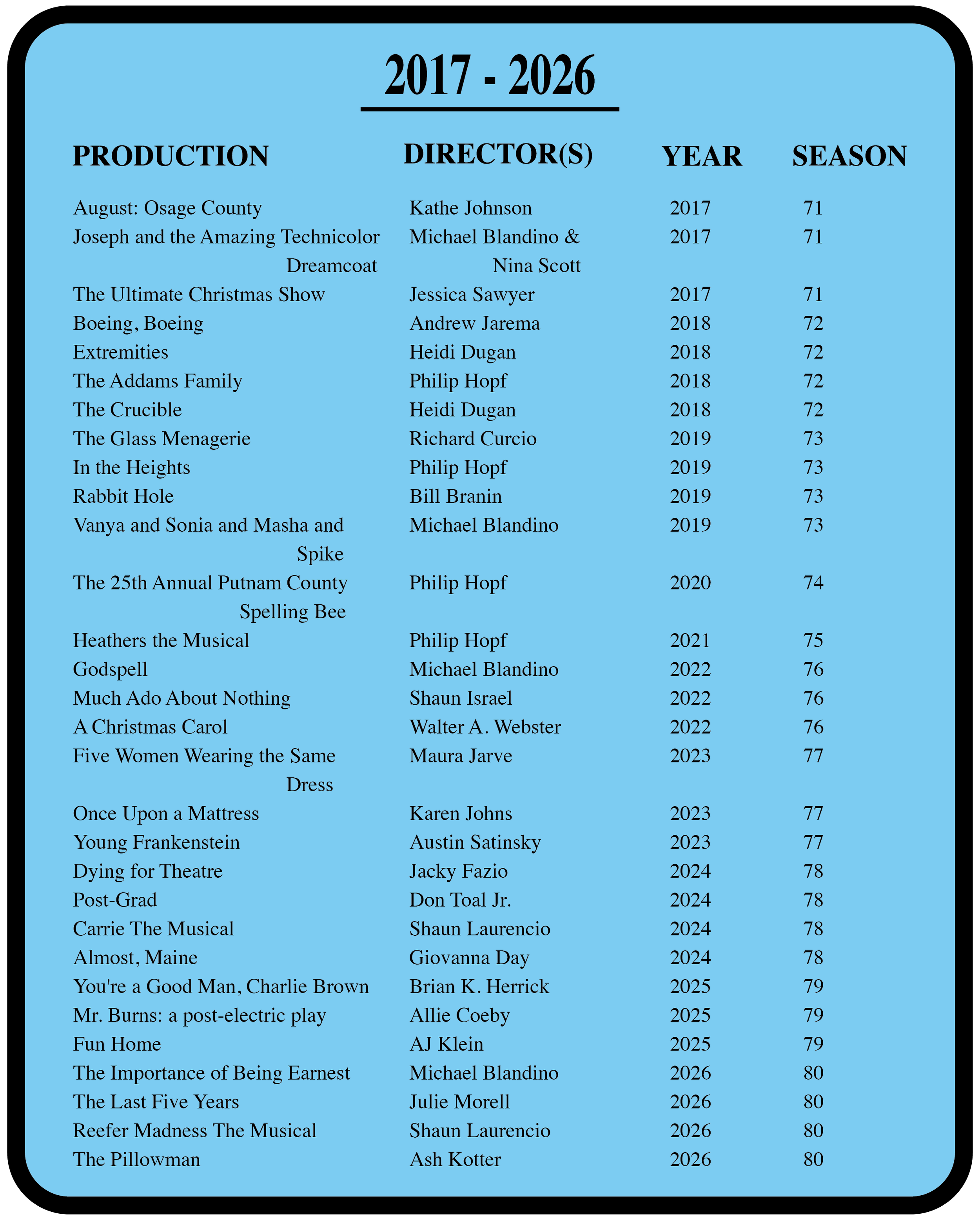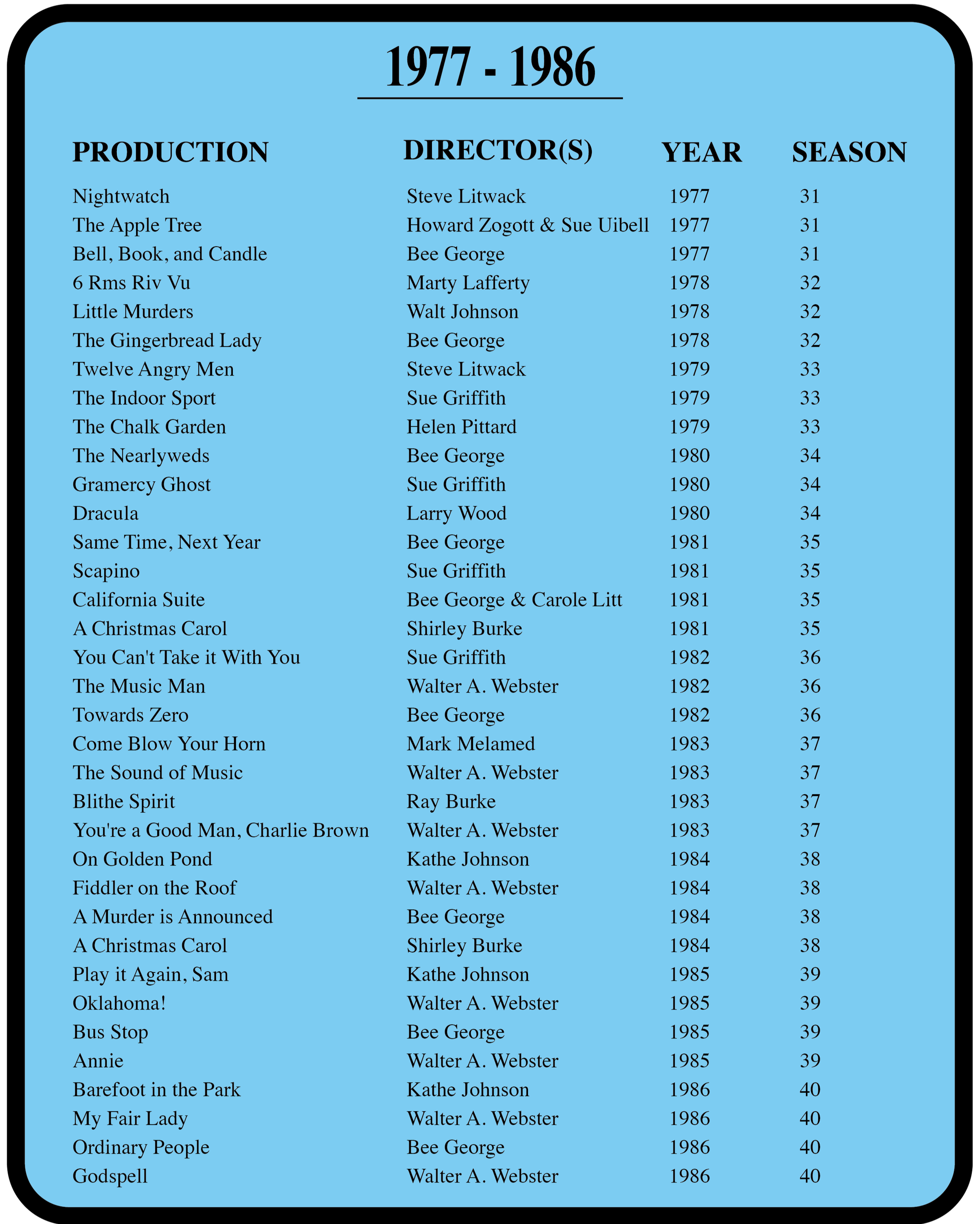 A look back at the past 80 years of productions