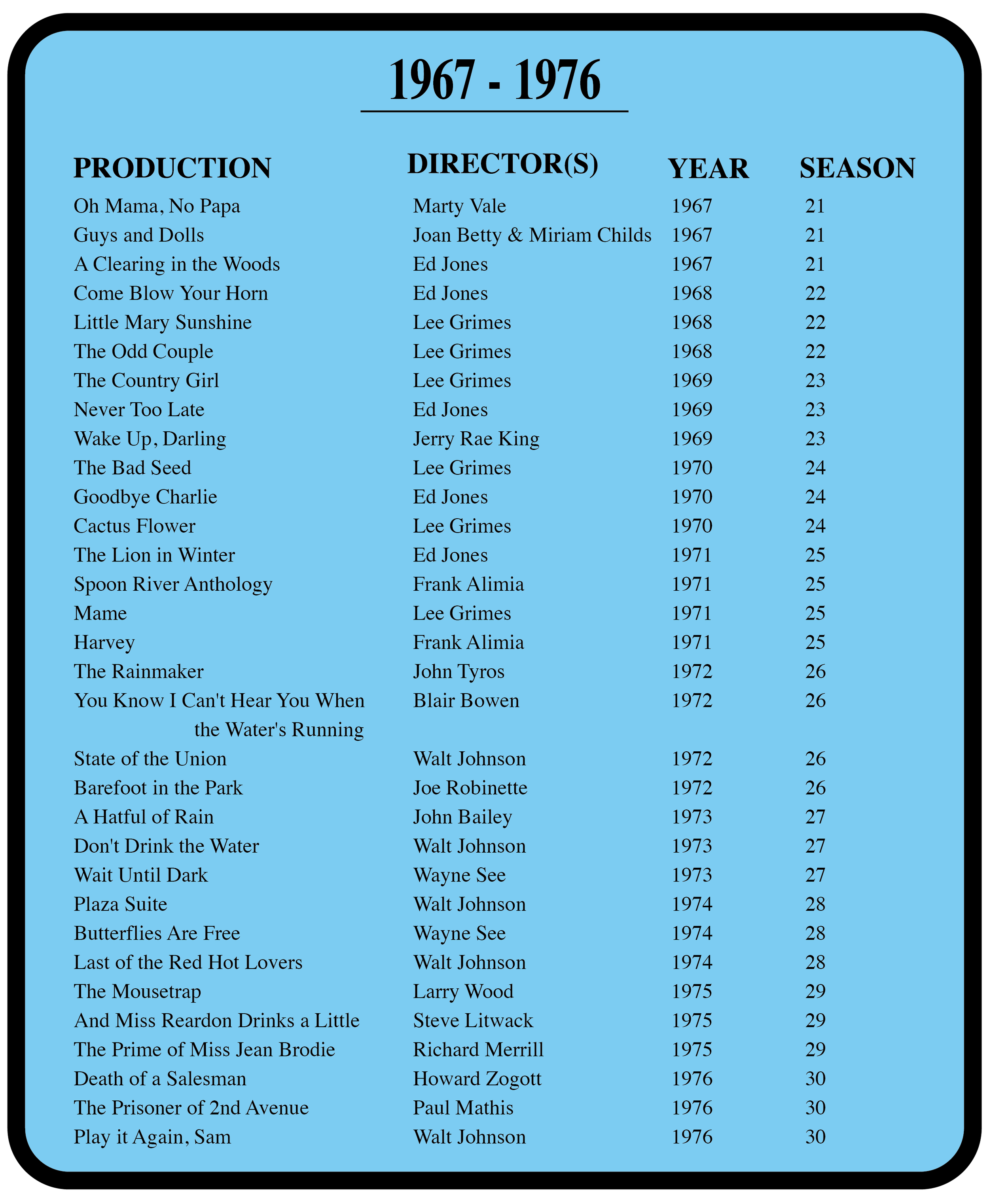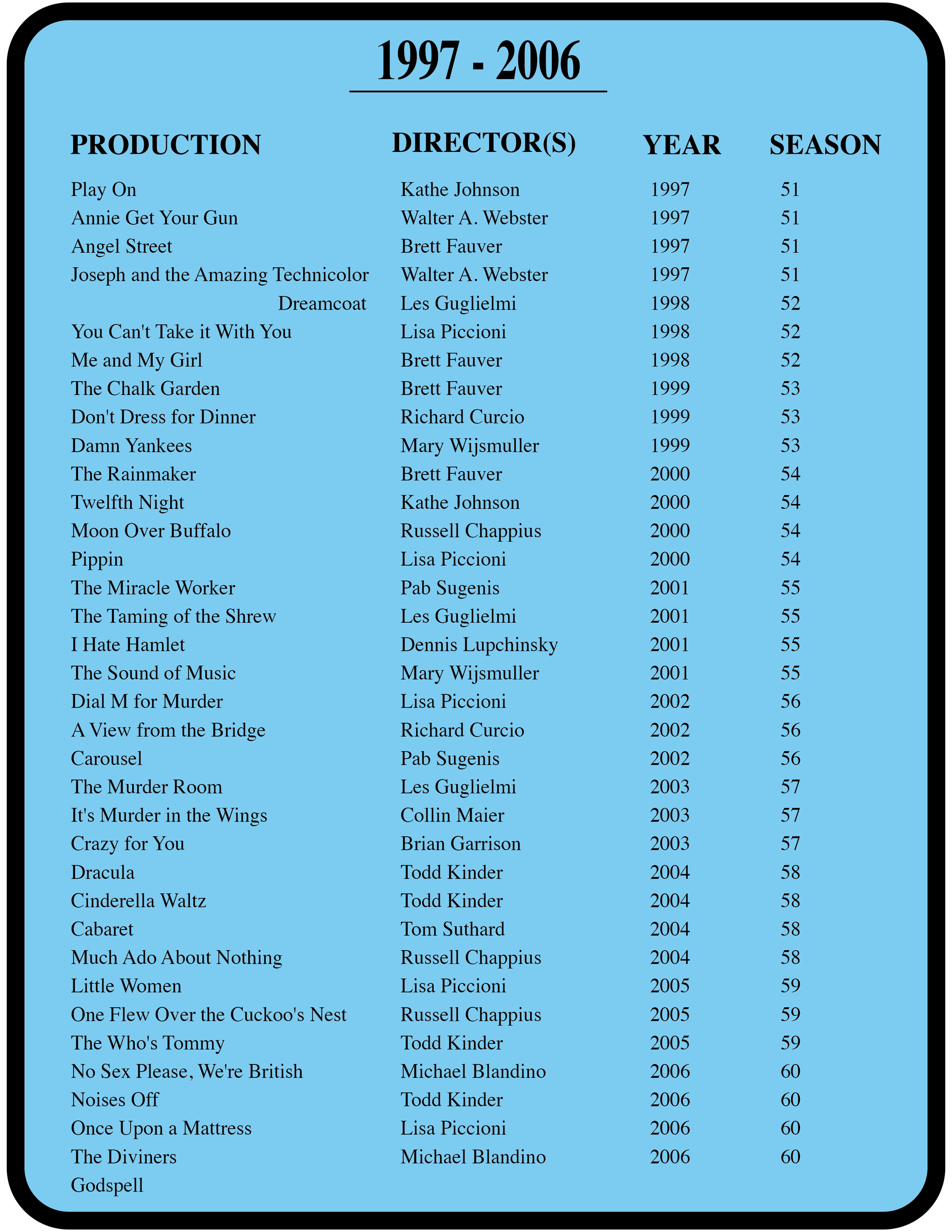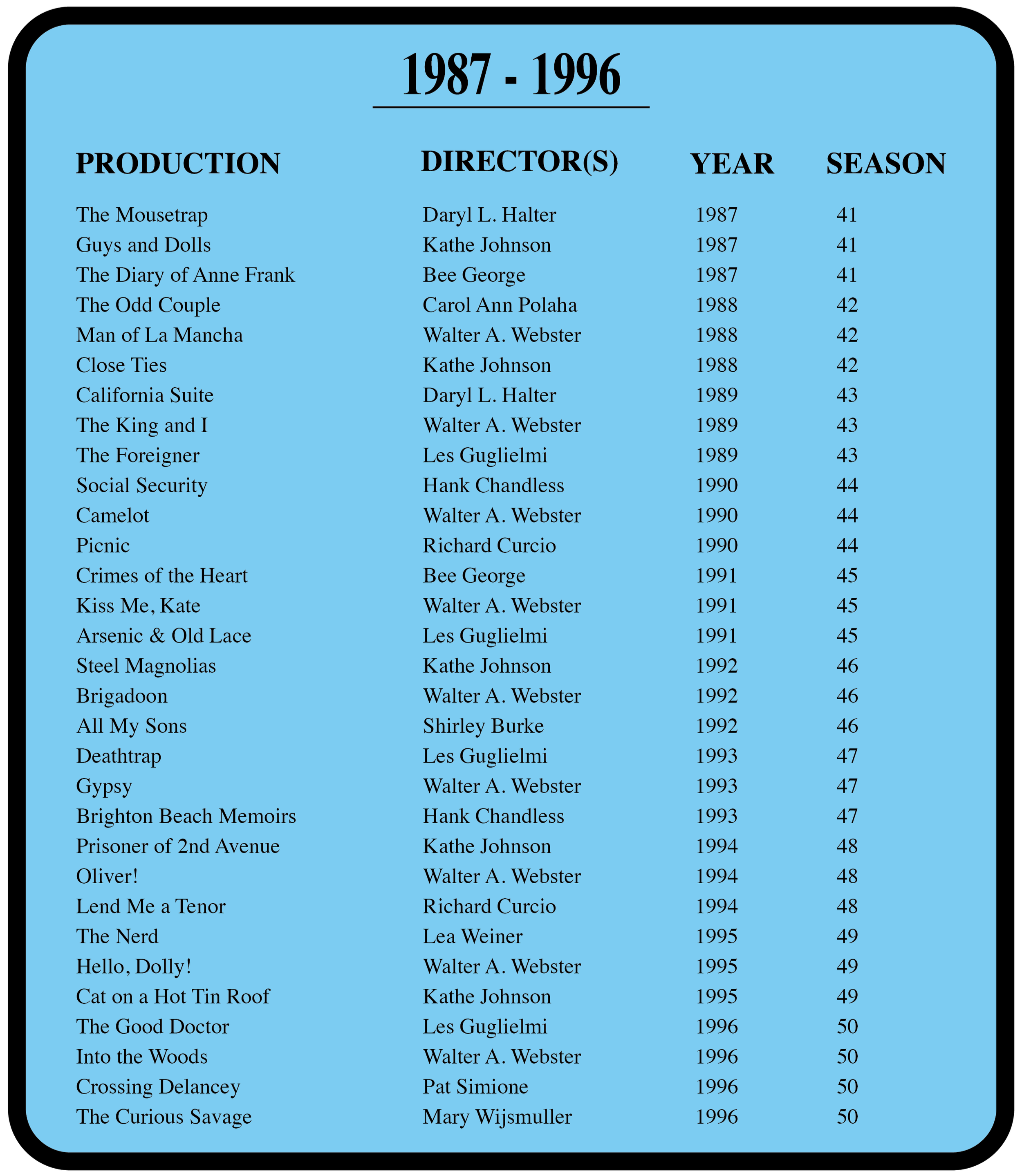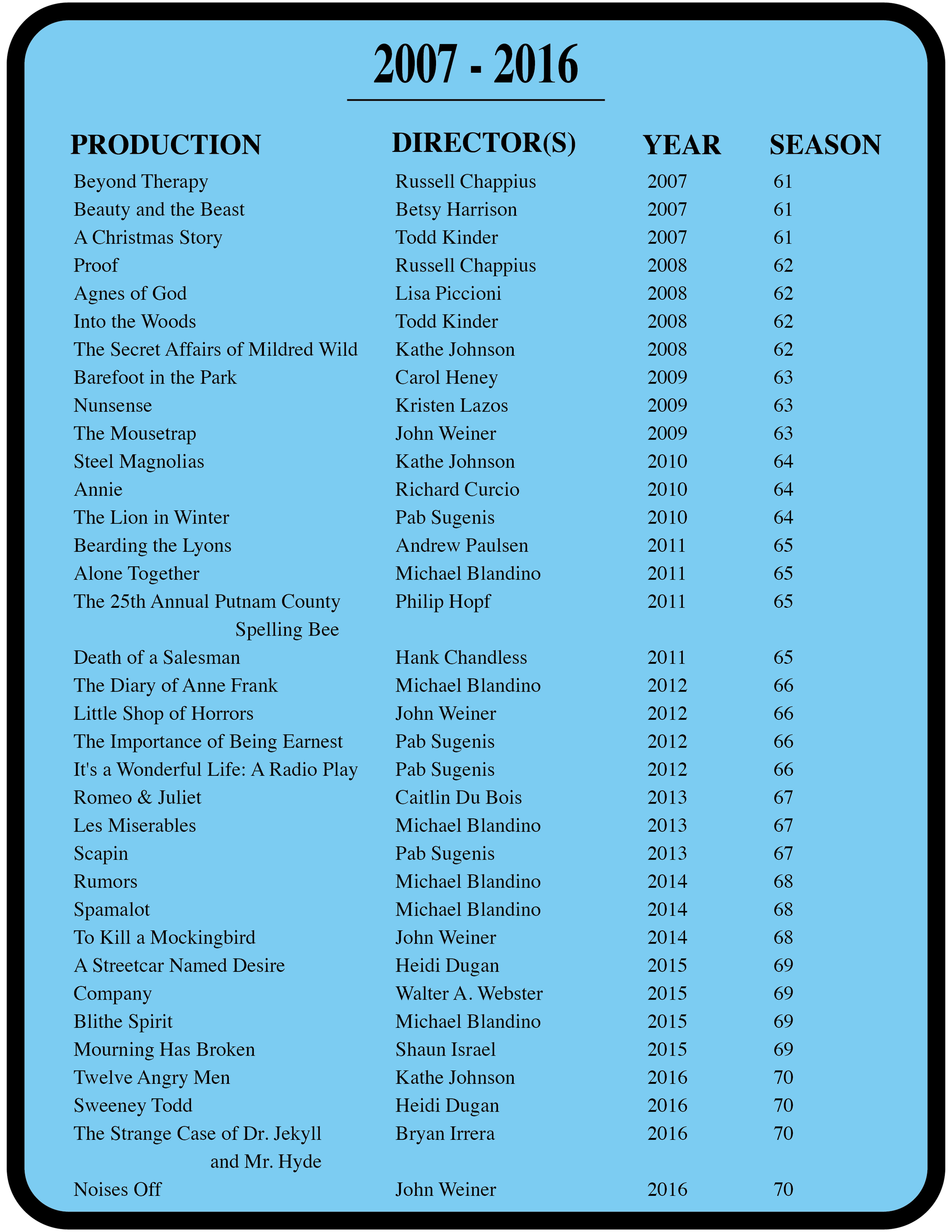 A look back at the past 80 years of productions